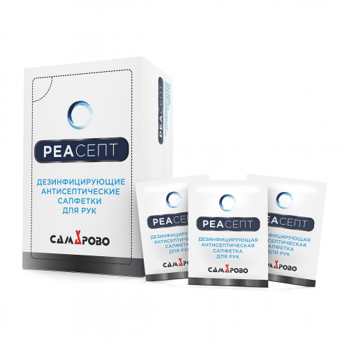 Салфетка. Дезинфицирующие салфетки "Реасепт" представляют собой рулон перфорированной ленты из белого безворсового нетканого материала - спанлейс, пропитанные дезинфицирующим средством "Реасепт".